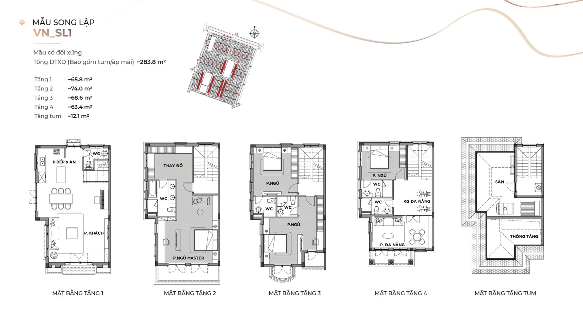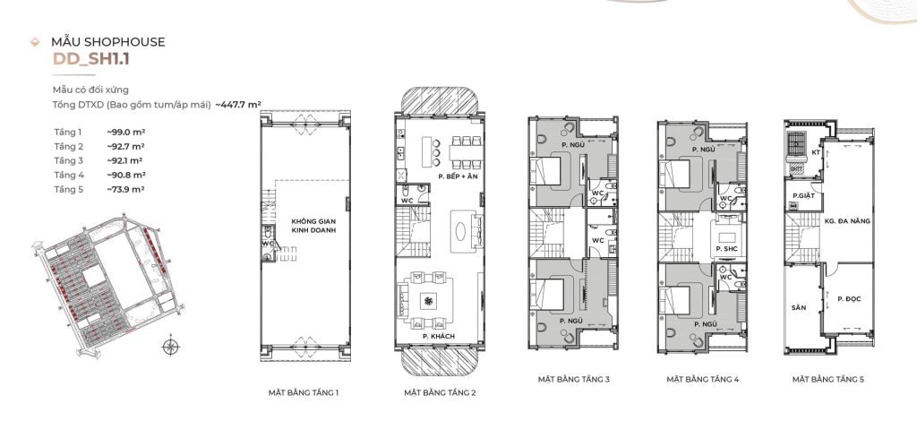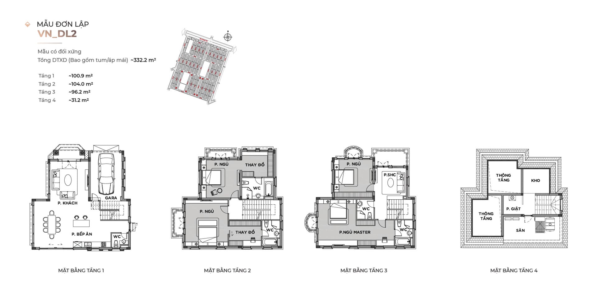 - Loại hình sản phẩm: Shophouse, liền kề, biệt thự đơn lập, biệt thự song lập.