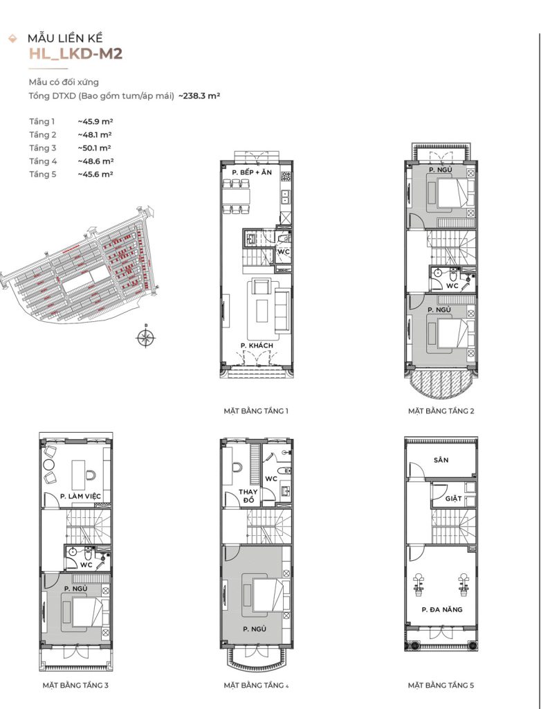 - Loại hình sản phẩm: Liền kề, biệt thự song lập và đơn lập.