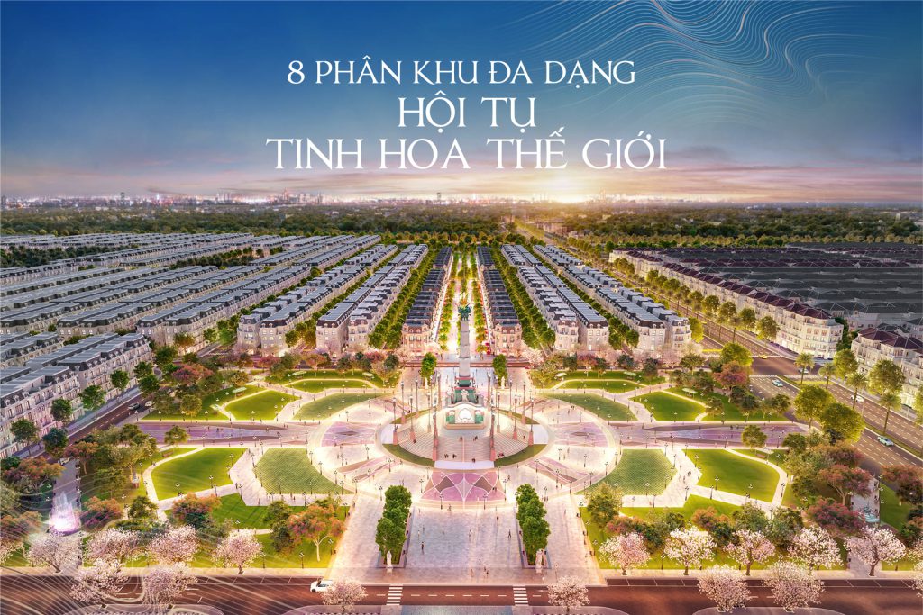 Kinh Đô Ánh Sáng được nhận định là phân khu thương mại trung tâm, sôi động nhất của dự án khi quy tụ nhiều ưu thế về vị trí – tiện ích – thiết kế. Tái hiện lại một kinh thành Paris hoa lệ, rực rỡ ngày đêm với những dãy nhà phố Pháp cổ trang nhã, quảng trường trung tâm với điểm nhấn là Tháp biểu tượng ánh sáng cao 50m và các bức tượng Thần tình yêu, Thần âm nhạc, thần Mặt trời, Thần Vệ nữ.